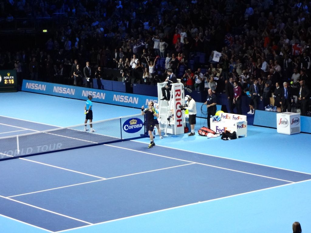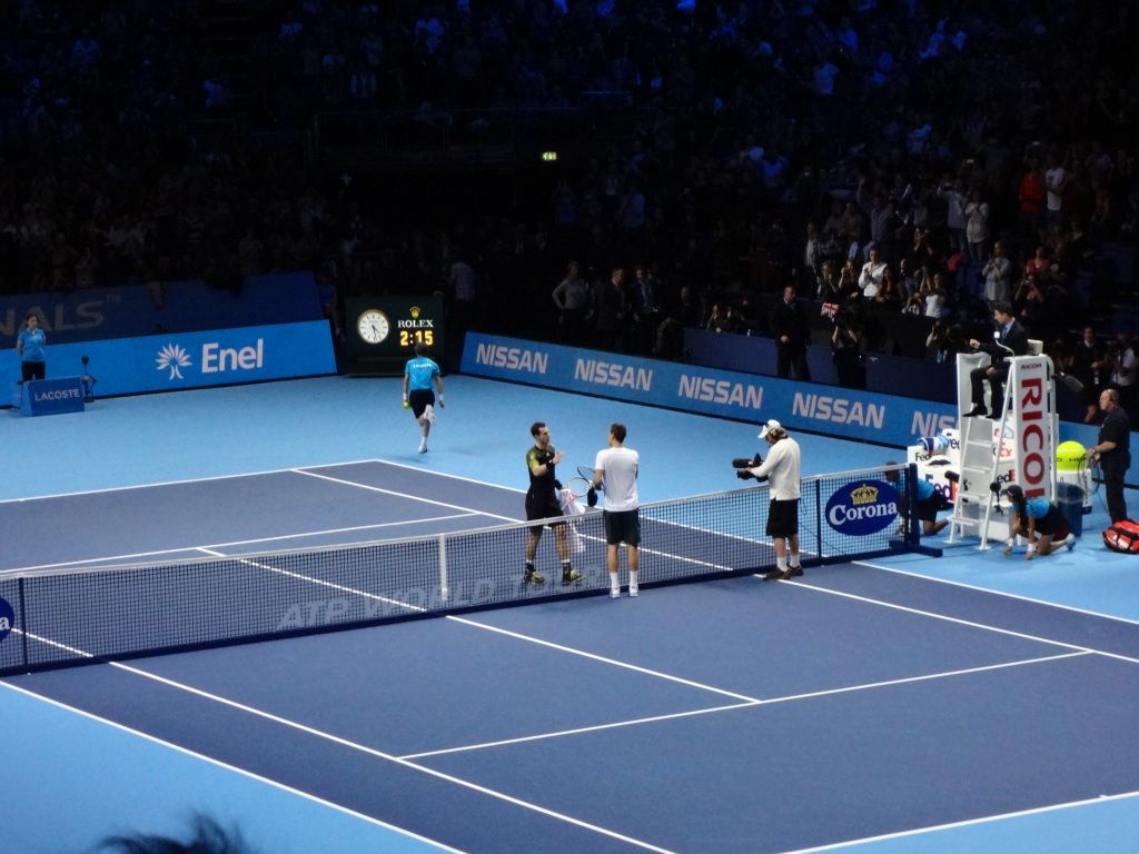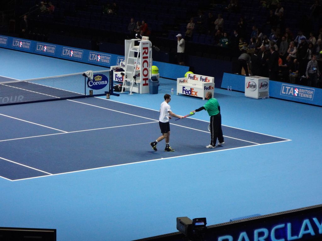 The match was quite entertaining but not the best doubles I have seen. Lindstedt was ridiculously grumpy as normal - as shown by him throwing his racquet on the floor after they lost the match! The points were quite short and soon it was Andy time!