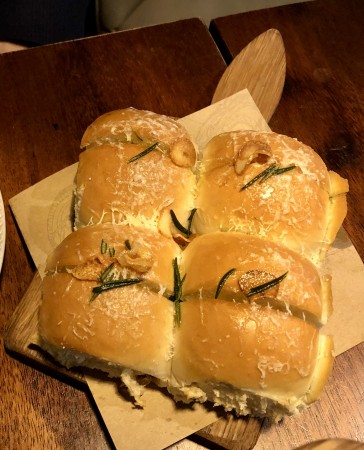 We were eating in Jamie’s tonight and for starters I had the meat plank and Rob had garlic bread, these were both very good.