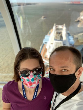We stopped at the pub for a couple of drinks before we popped up to the top of the ship to see the city view at night (it was cold so we didn’t stay long!).