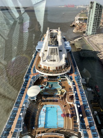 We wandered around the ship and got coffee which we drank in Two70 - I'm fairly sure we watched some performers rehearsing. We had an appointment at the ‘next cruise’ desk at 1130, not really sure what the point of booking was as we waited 20 mins past our time before someone was available, we got prices for several options (Alaska, Florida and a cruise out of Barcelona on the new ship Wonder).