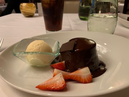 For dessert Rob had the Royal chocolate cake with ice cream and I had a chocolate and olive oil cake with ice cream. Both were amazing!
